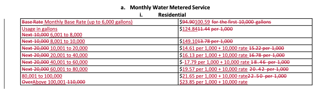 Rubin might be trying to point to a study establishing new rates JSSD charges non-governmental users by volume. The January 2023 study explained: “existing rates are based on meter size and consist of a base rate with a volumetric allowance and a volumetric overage rate for users who exceed the 10,000 gallon allowance.”