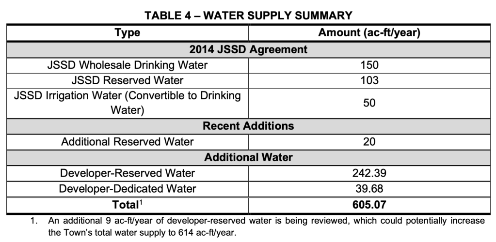 The audit also includes 242 acre-feet of “developer-reserved” water as part of the town’s future supply.